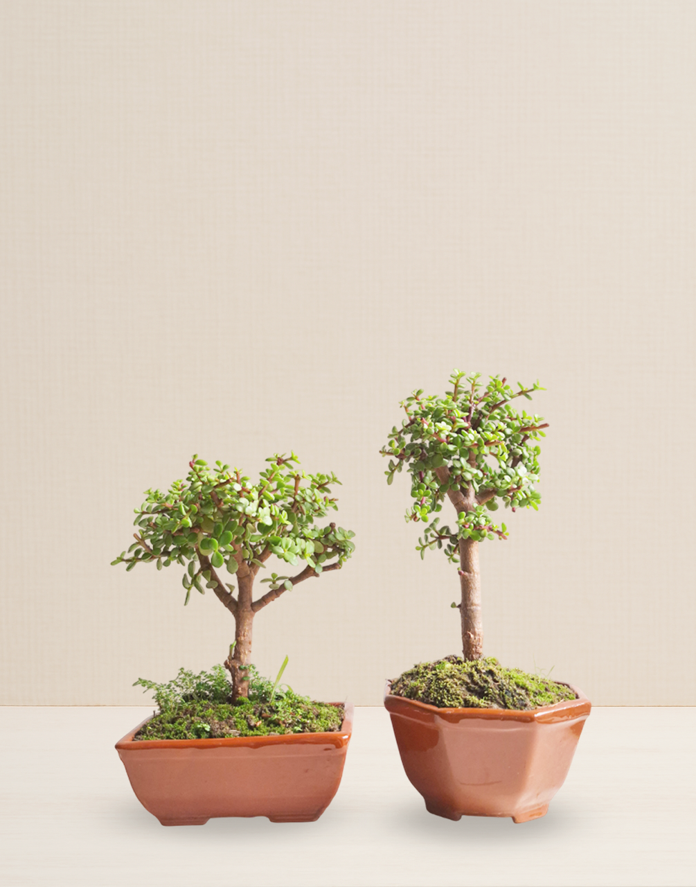 Este dúo de Bonsáis Jade de 6 años combina elegancia y simbolismo en un formato ideal para regalar o embellecer cualquier espacio. Trabajados en estilo Hokidachi, cada ejemplar presenta un forma del tronco de manera natural, transmitiendo armonía y balance.